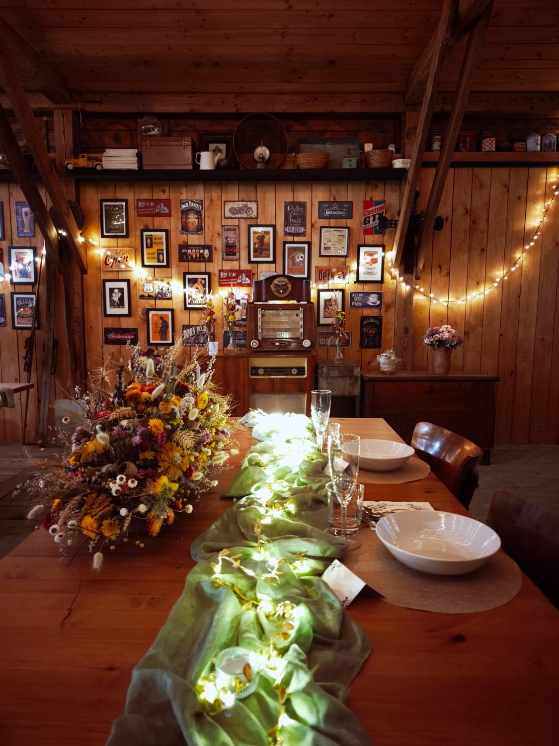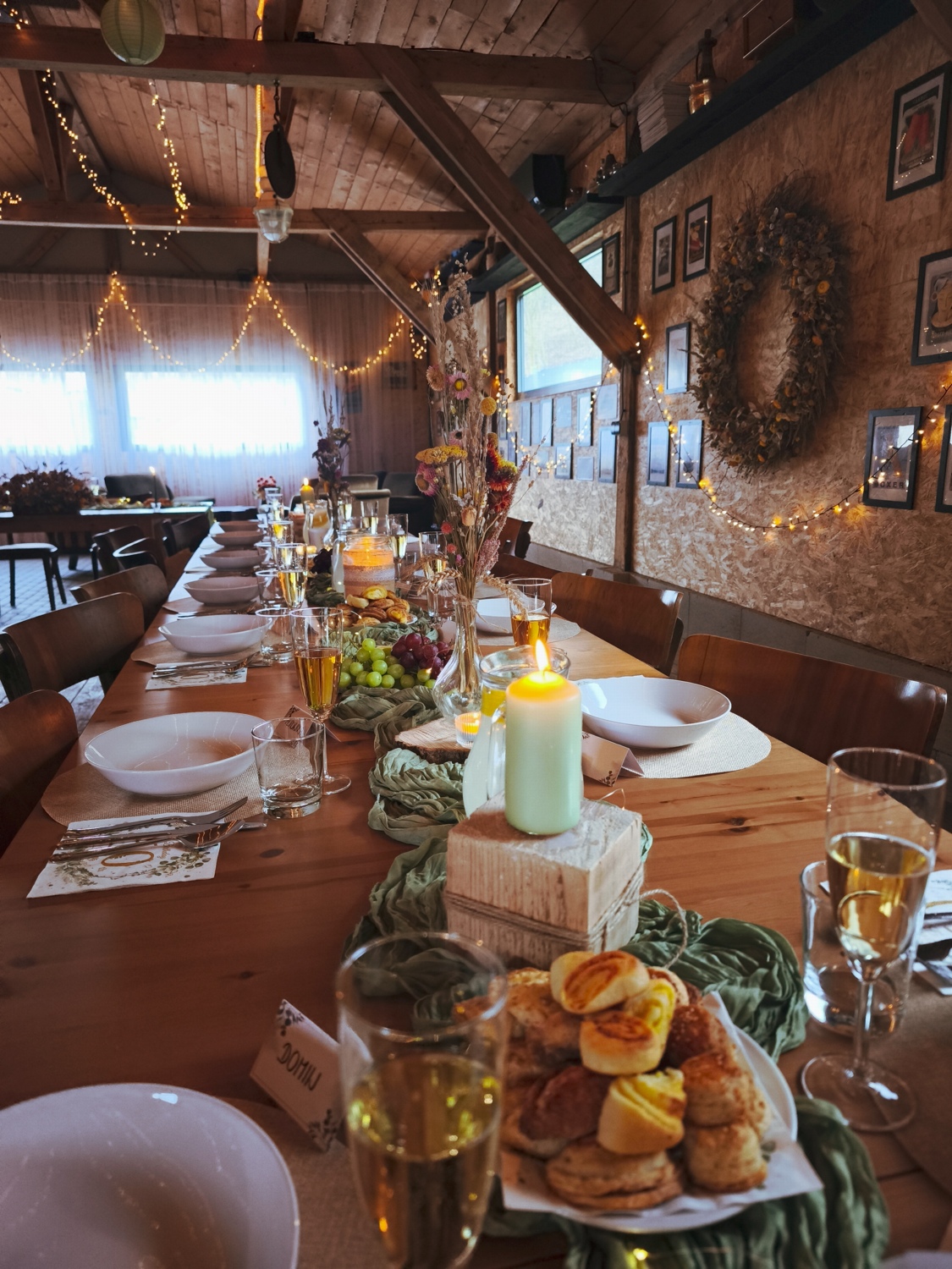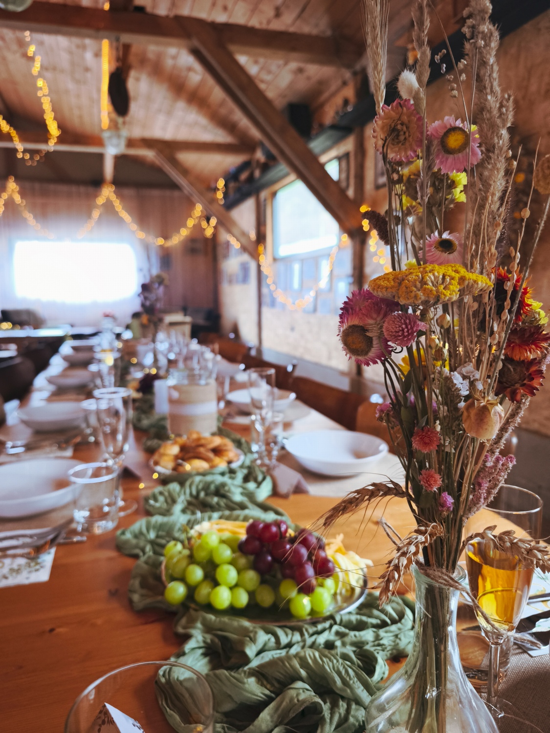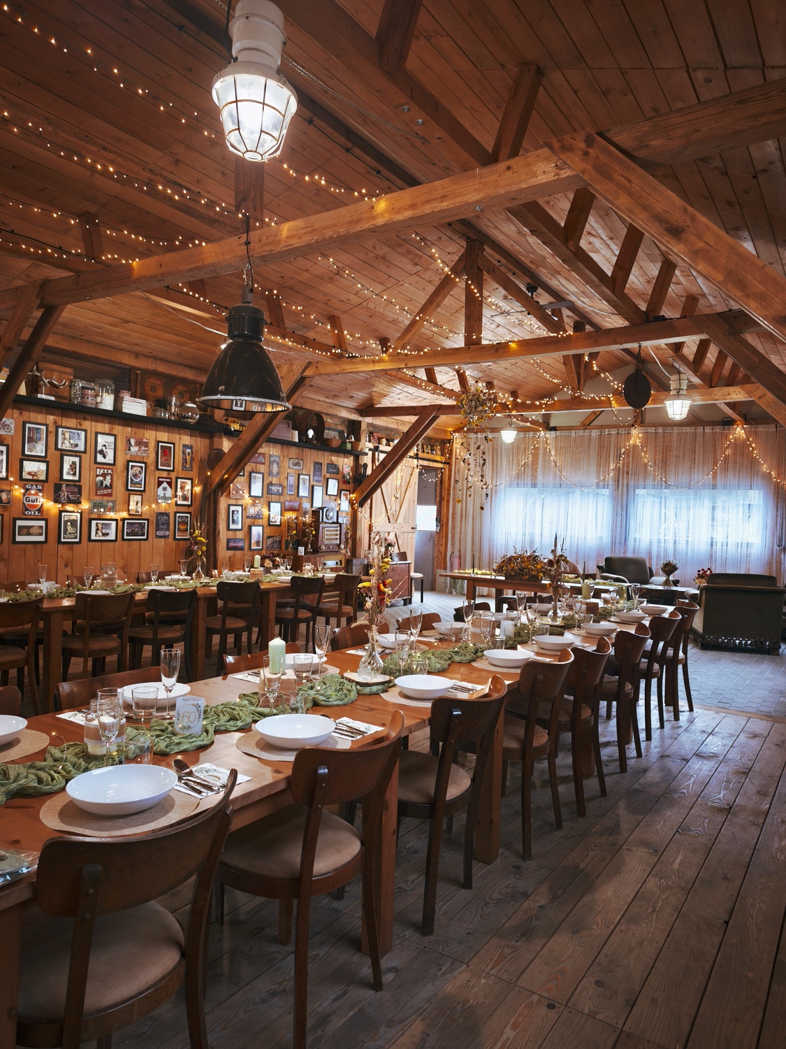 Obrad si viete dohodnúť priamo v areáli – podľa možností miesta a vašej predstavy napríklad na lúke, pri jazierku alebo v altánku; v prípade potreby poslúži terasa ako príjemné zázemie. Hostina prebieha v štýlovom humne, kde sa prirodzene prepájajú rozhovory, tanec a chvíle s rodinou.