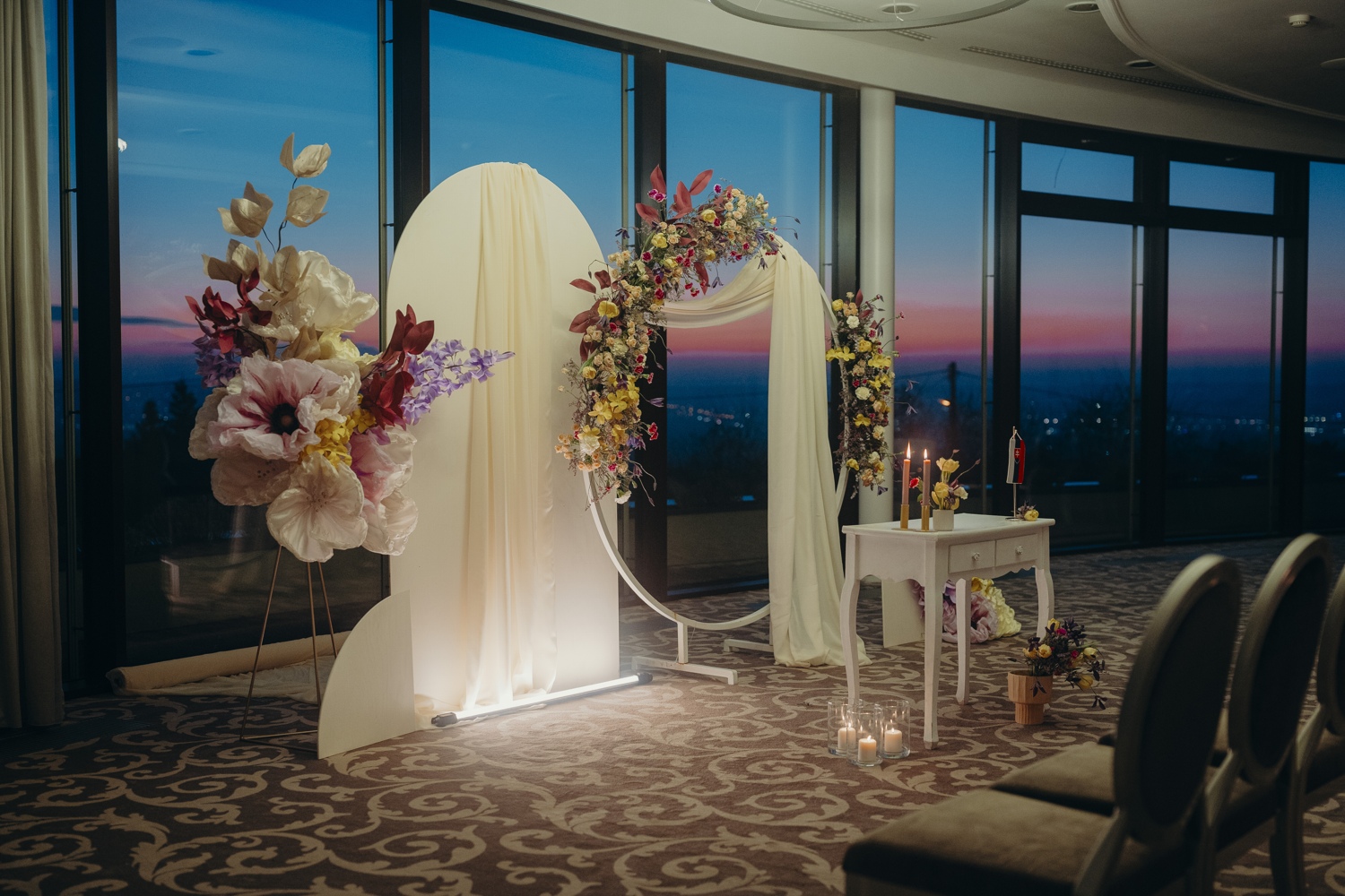Ak túžite po romantickej svadbe, tento priestor ponúka kapacitu až 130 hostí. Súčasťou je veľký tanečný parket v presklenom a zvukovo oddelenom priestore, rozsiahla terasa s výhľadmi na mesto a trávnatá plocha pre svadobný obrad v exteriéri.